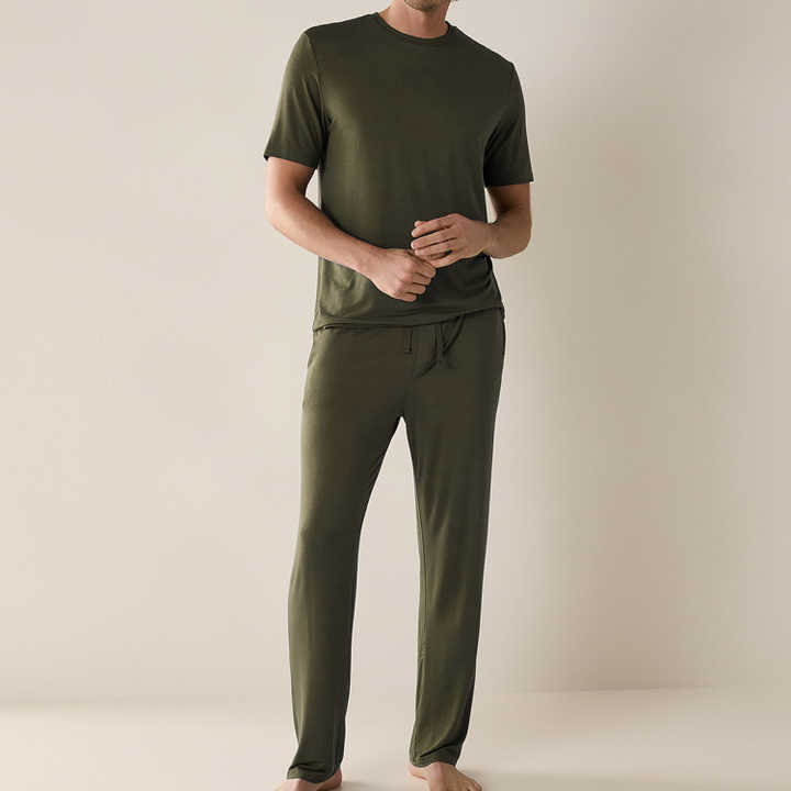 Ervaar het ultieme comfort én duurzame luxe met deze premium lounge set voor de moderne man. Gemaakt van 100% biologisch bamboekatoen, bestaat de set uit een korte mouwen T-shirt en een bijpassende broek. De stof voelt zijdezacht aan, ademt uitstekend en houdt je koel in de zomer en comfortabel warm wanneer het frisser wordt perfect voor ontspanning het hele jaar door.